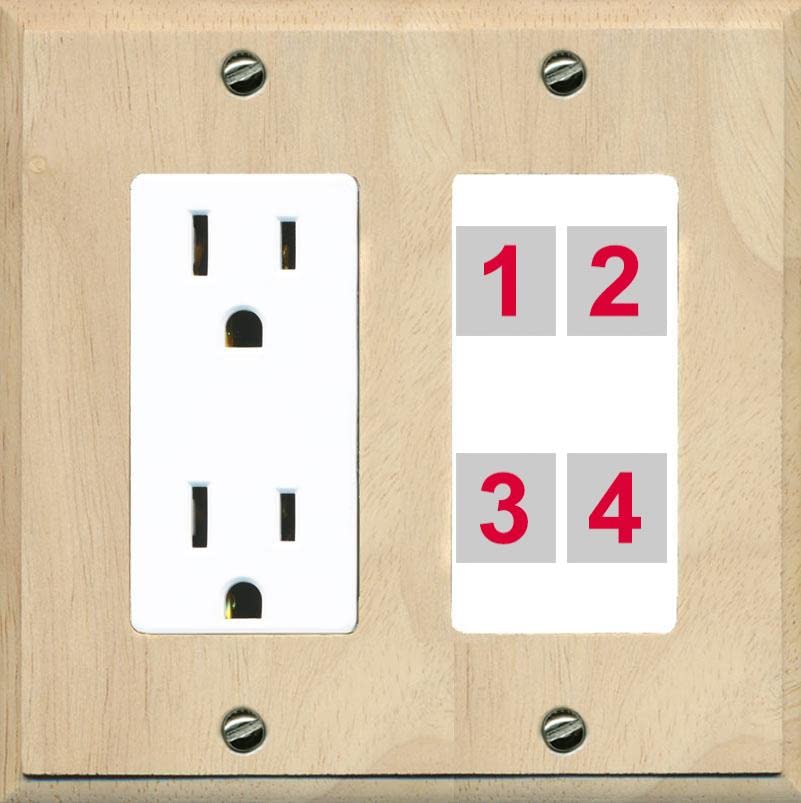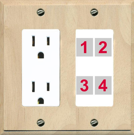 RiteAV Custom 4 Port Custom Wall Plate - Outlet [Wood/White]