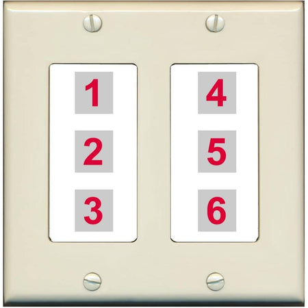 RiteAV 6 Port Custom Wall Plate - 2 Gang [Light-Almond/White]