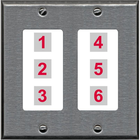 RiteAV 6 Port Custom Wall Plate - 2 Gang [Stainless/White]