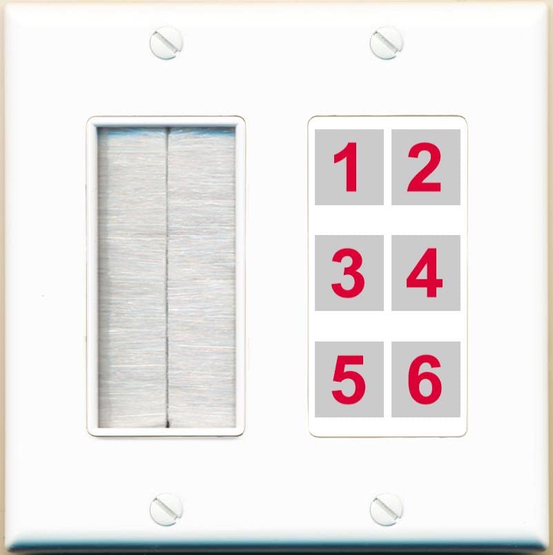 RiteAV 6 Port Custom Wall Plate - Brush [White/White]
