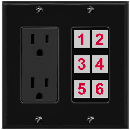 RiteAV 6 Port Custom Wall Plate - Outlet [Black/Black]