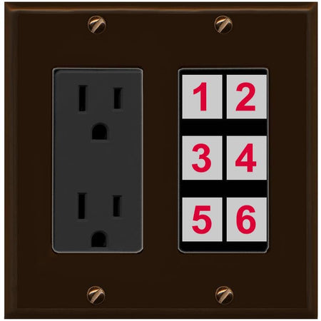 RiteAV 6 Port Custom Wall Plate - Outlet [Brown/Black]