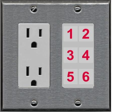 RiteAV 6 Port Custom Wall Plate - Outlet [Stainless/Gray]