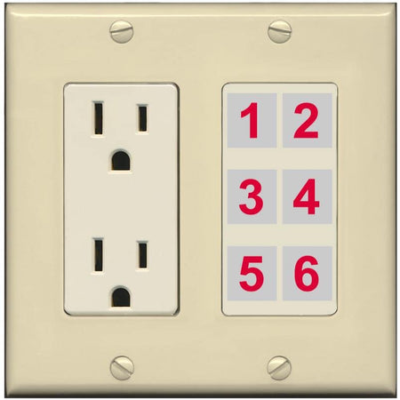 RiteAV 6 Port Custom Wall Plate - Outlet [Ivory/Light-Almond]