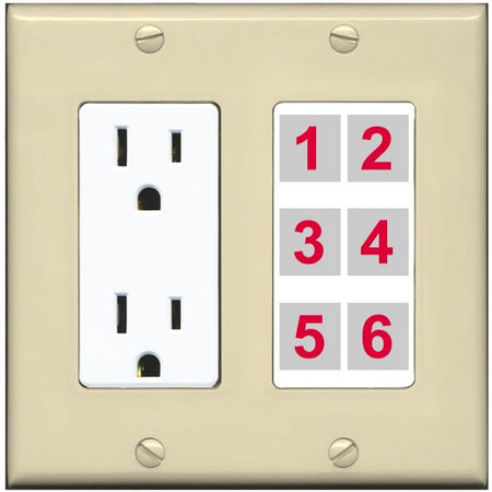 RiteAV 6 Port Custom Wall Plate - Outlet [Ivory/White]