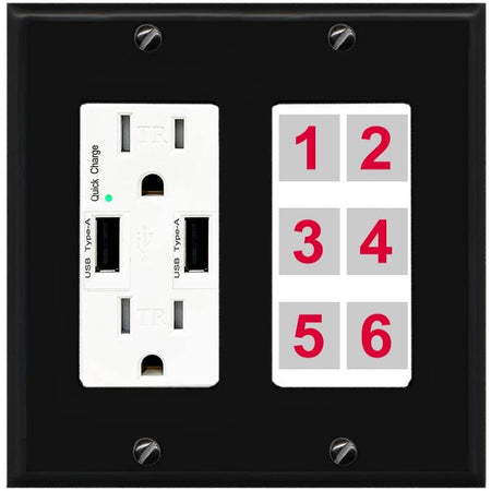 RiteAV 6 Port Custom Wall Plate - USB Charger [Black/White]