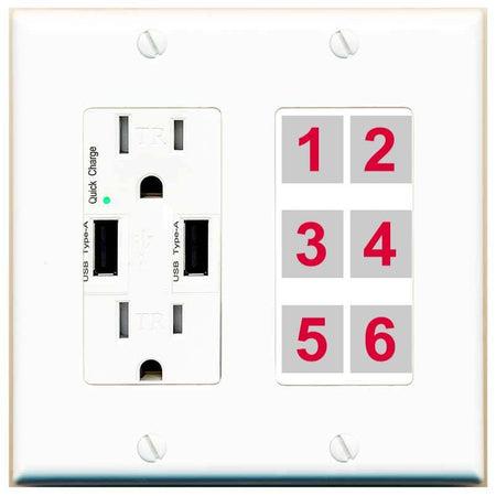 RiteAV 6 Port Custom Wall Plate - USB Charger [White/White]