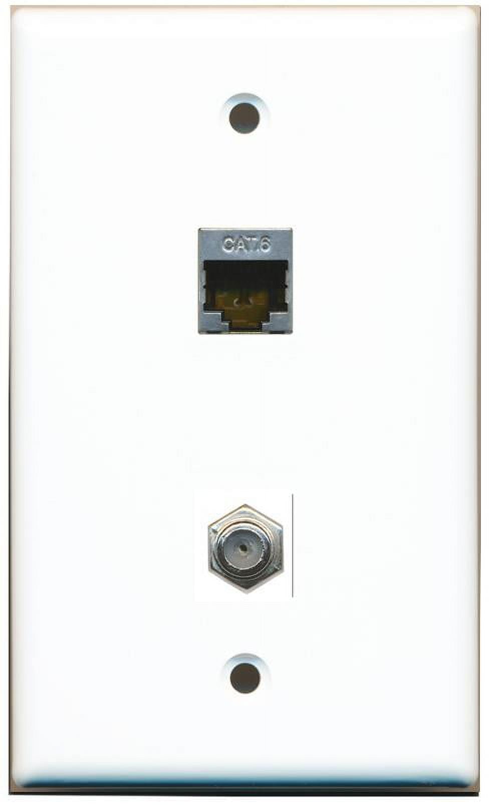 RiteAV 1 Gang Wall Plate (White) 2 Port - Cat6 (Shielded) Coax (White)