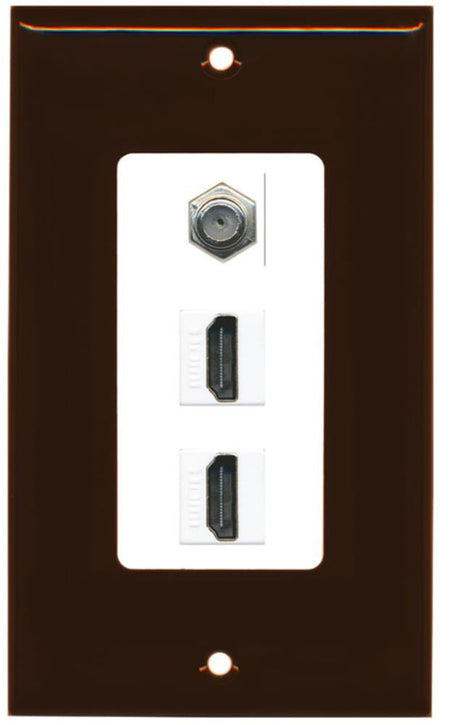 RiteAV - 2 Port HDMI 1 Coax Cable TV- F-Type Decorative Wall Plate - Brown & White
