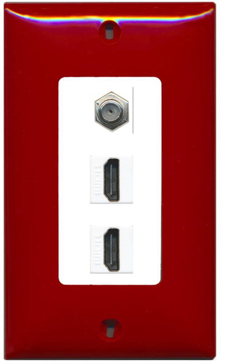 RiteAV - 2 Port HDMI 1 Coax Cable TV- F-Type Decorative Wall Plate - Red & White