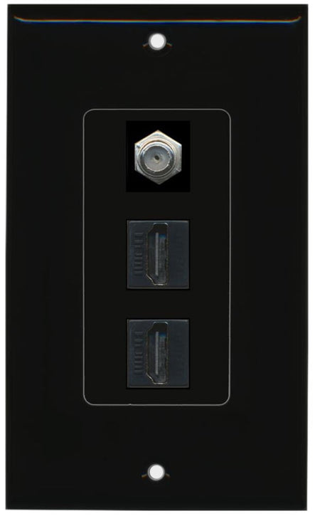RiteAV - 2 Port HDMI 1 Coax Cable TV- F-Type Decorative Wall Plate - Black