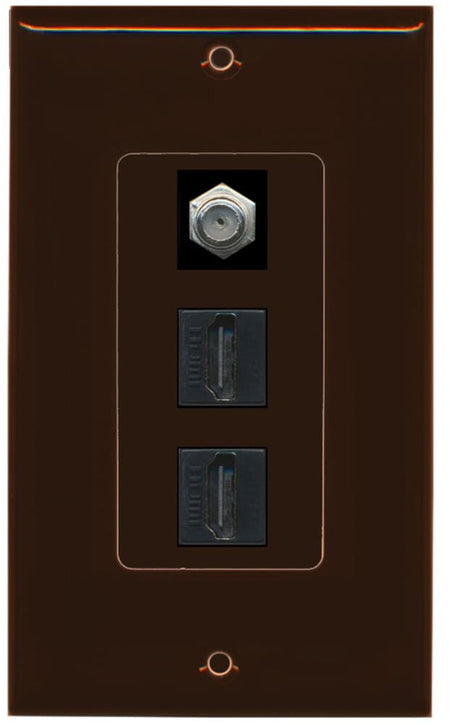RiteAV - 2 Port HDMI 1 Coax Cable TV- F-Type Decorative Wall Plate - Brown