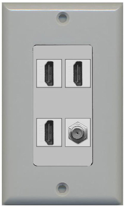 RiteAV - 3 x HDMI and 1 x Coax Cable TV F Type Port Wall Plate Decorative - Gray