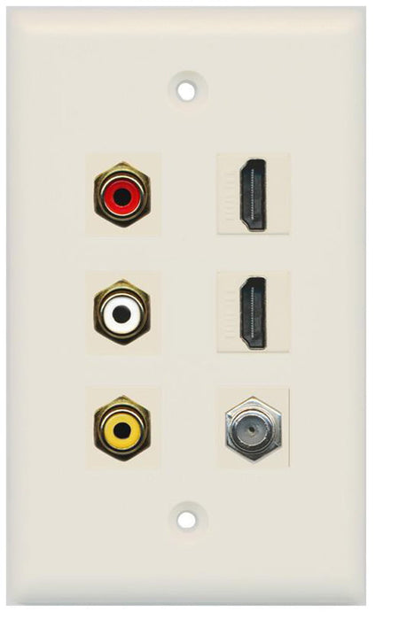 RiteAV - 3 x RCA - 2 X HDMI and 1 x Coax Cable TV Port Wall Plate - Light Almond