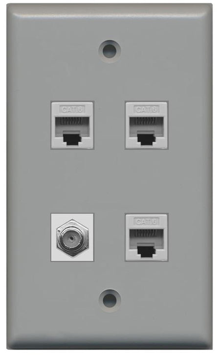 RiteAV 1 Port Coax Cable TV- F-Type 3 Port Cat6 Ethernet Wall Plate - Gray