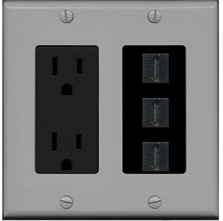 RiteAV - 15 Amp Power Outlet 3 Port HDMI Decorative Wall Plate - Gray/Black