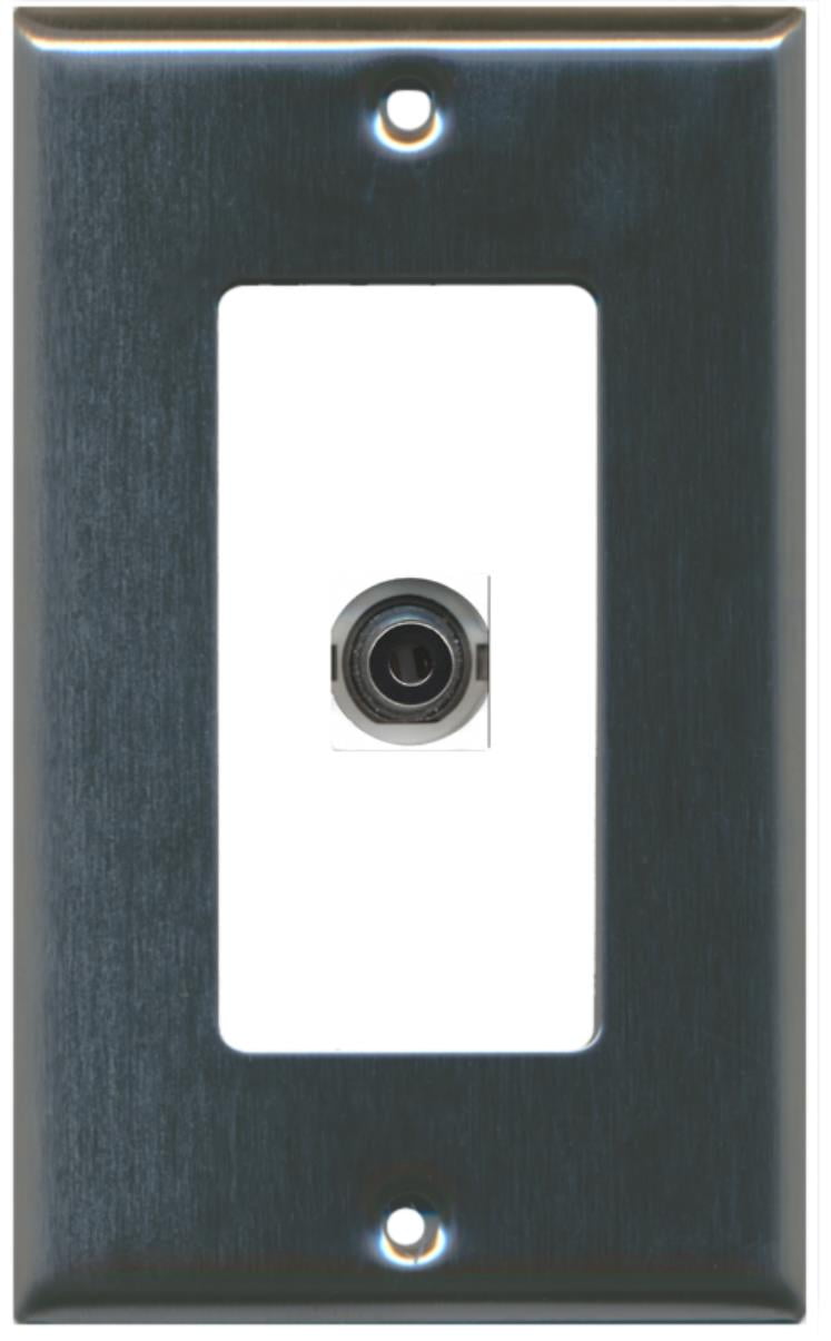RiteAV - 1 3.5mm Audio-Headphone Jack Port Wall Plate Decorative - Stainless Steel/White - Bracket Included