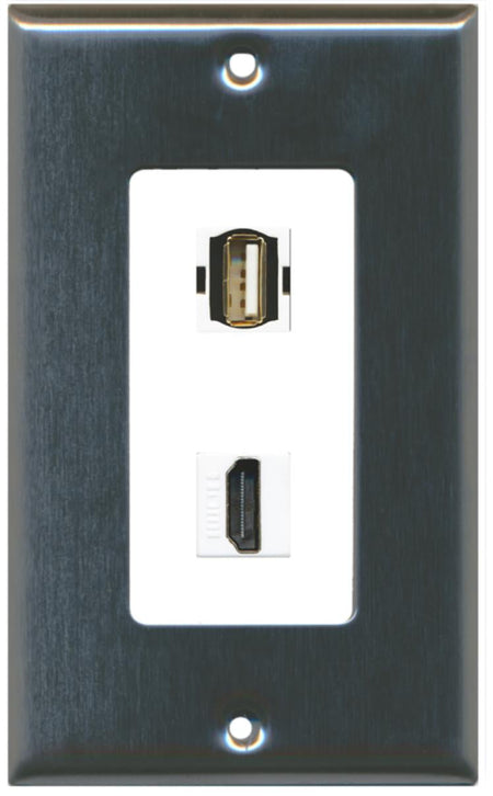 RiteAV - 1 USB A/A and 1 HDMI Port Decorative Wall Plate - Stainless Steel/White - Bracket Included