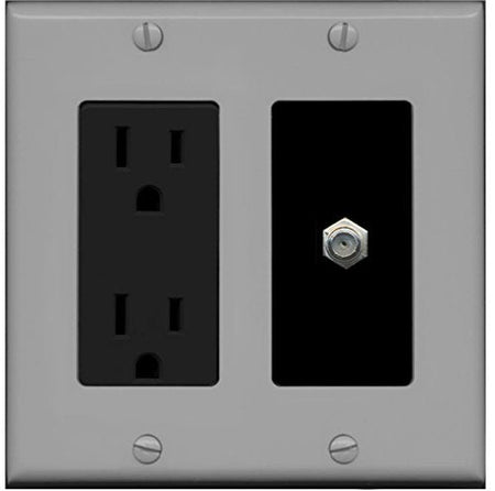 RiteAV - 15 Amp Power Outlet and 1 Port Coax Cable TV- F-Type Decorative Type Wall Plate - Gray/Black is constructed from high-quality materials that will provide a hassle-free service life after a quick and simple installation. The ready-to-install plate includes a self-grounding receptacle, which has the option of both push-in or terminal screw wiring options, a stylish surround (or cover plate) and keystone couplers which are color-matched to the other components for a perfect look. This discreet solution enables you to route your cabling through the walls and results in a clean, professional look behind wall mounted televisions, monitors, projectors and entertainment centers in both residential (home theater) and commercial (classroom, boardroom, factory floor, recording studio, etc.) settings. We include the sturdy hardware to mount both pieces securely and the added benefit is that the heads of the mounting screws are painted the respective color of the other components for a seamless appearance. The plates are suitable for both residential and commercial use and with the coordinating color options, they blend better with walls, backsplashes, trim or room decor. They're perfect for contractors, builders, interior designers or the DIYers that are remodeling a home and want their outlets to match or complement paint/finishes. RiteAV offers a wide variety of A/V Plates to suit any connection requirement, so be sure to check out our entire catalog of products. Please note that we recommend that a certified electrician perform the installation for any line-voltage related work and that all National Electrical Codes are followed during installation.