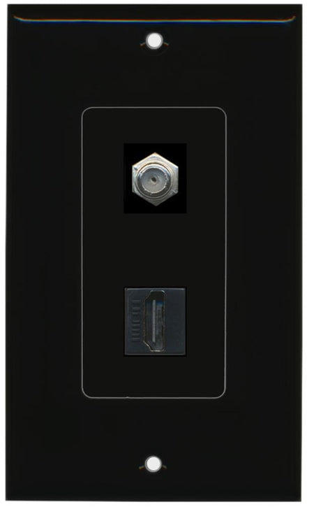 RiteAV - 1 x Cable TV Coax and 1 x HDMI Port Wall Plate Decorative Type - Black - Bracket Included