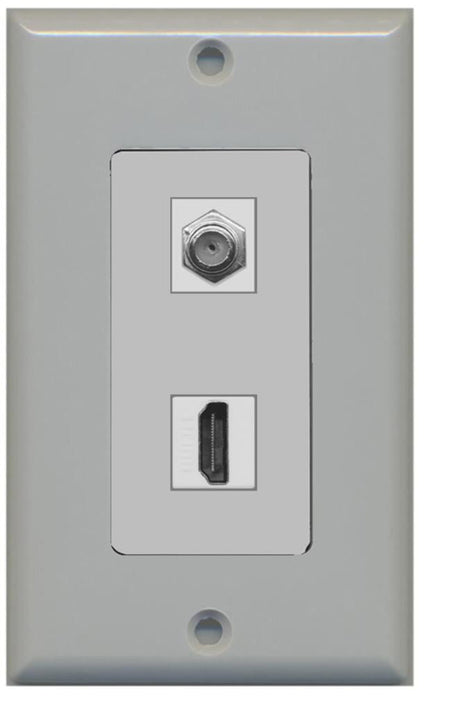 RiteAV - 1 x Cable TV Coax and 1 x HDMI Port Wall Plate Decorative Type - Gray - Bracket Included