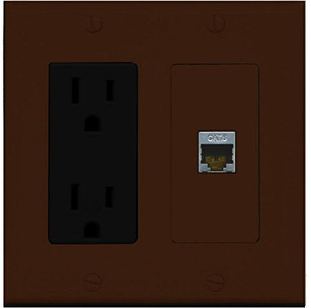 RiteAV - 15 Amp Power Outlet and 1 Port Shielded Cat6 Ethernet Decorative Type Wall Plate - Brown
