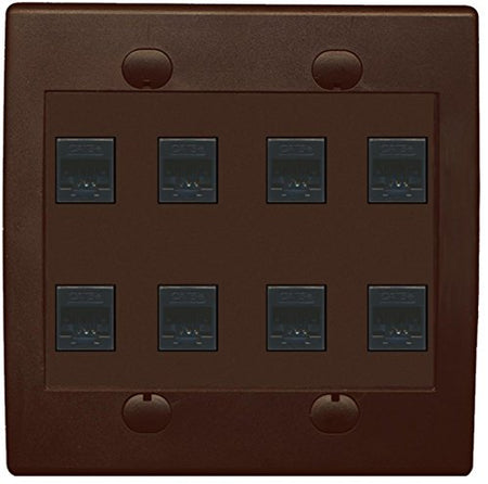 RiteAV 8 Port Flat Dual 2 Gang Ethernet Cat5e RJ45 Network Wall Plate - Brown