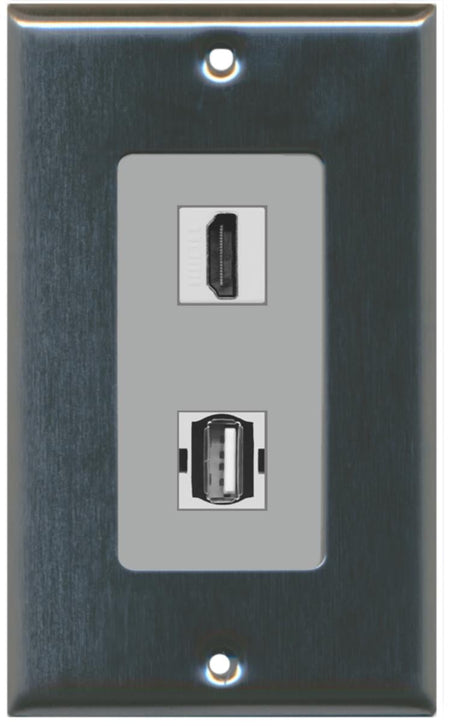 RiteAV - 1 Port USB A-A 1 Port HDMI Decorative Wall Plate - Stainless Steel - Bracket Included