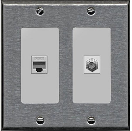 RiteAV - 1 Port Coax Cable TV- F-Type 1 Port Cat6 Ethernet Dual Gang Wall Plate - Stainless Steel/Gray