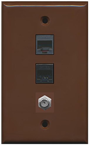 RiteAV - 1 Port Coax Cable TV- F-Type 1 Phone RJ11 RJ12 1 Cat5e Ethernet Wall Plate - Brown