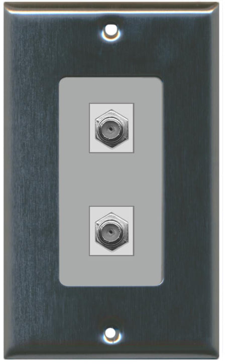 RiteAV - 2 Port Coax Decorative Type Wall Plate - Stainless Steel/Gray - Bracket Included