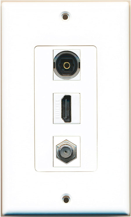 RiteAV - 1 Port HDMI 1 Coax Cable TV- F-Type 1 Toslink Wall Plate Decorative