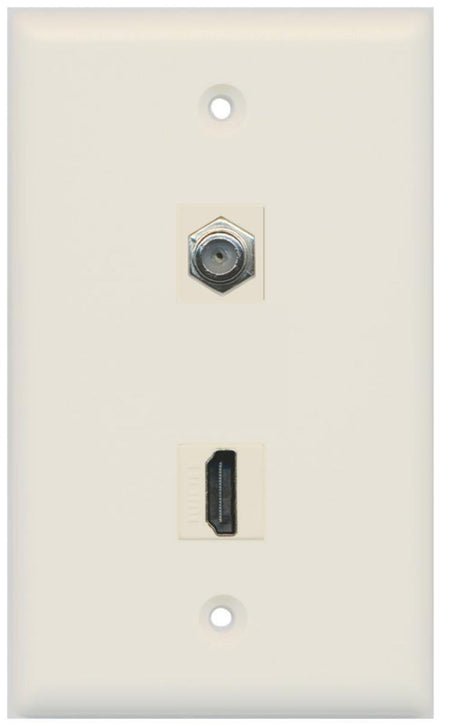 RiteAV - Flat 1 Port HDMI 1 Port Coax Cable TV- F-Type Wall Plate - Light Almond
