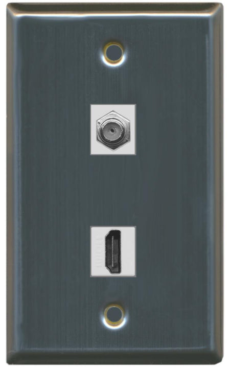 RiteAV - Flat 1 Port HDMI 1 Port Coax Cable TV- F-Type Wall Plate - Stainless Steel/Gray