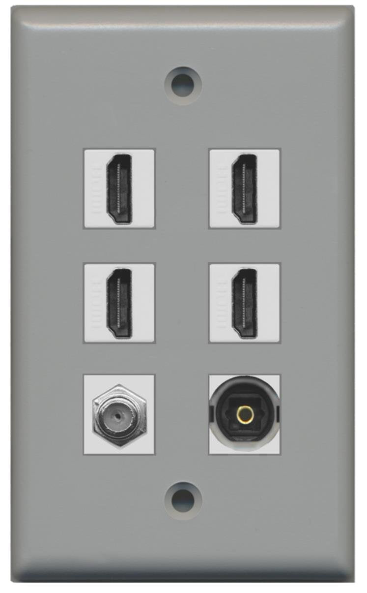 RiteAV - 4 HDMI and 1 - Coax Cable TV and 1 Toslink Port Wall Plate - Gray