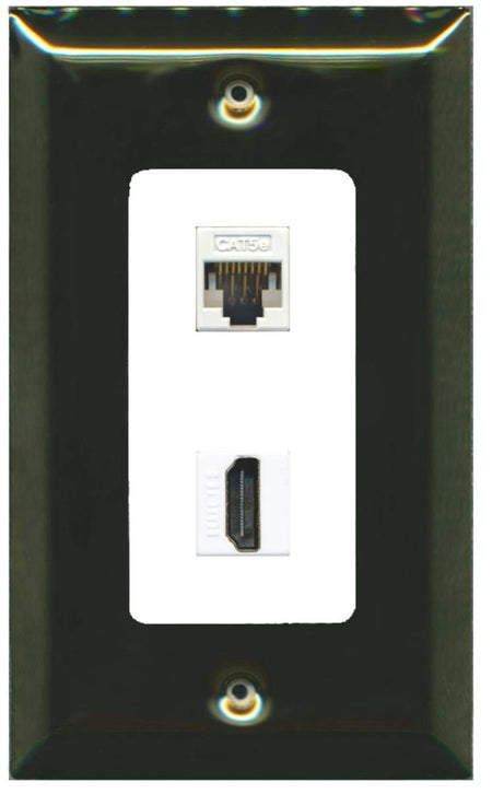 RiteAV - 1 Cat5e Ethernet and 1 HDMI Decorative Wall Plate - Brass/White