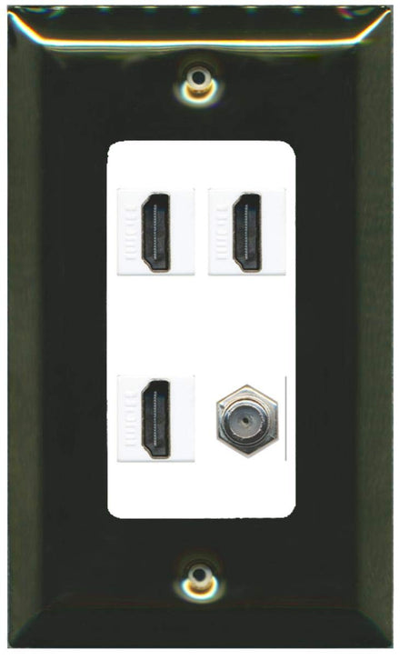 RiteAV - 3 x HDMI and 1 x Coax Cable TV F Type Port Wall Plate Decorative - Brass/White