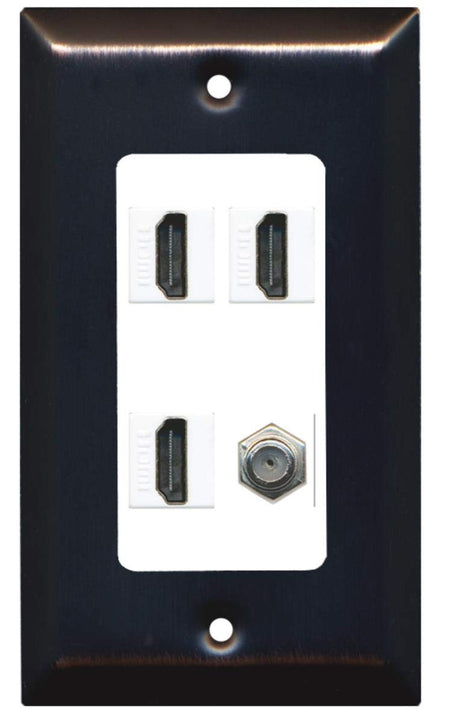 RiteAV - 3 x HDMI and 1 x Coax Cable TV F Type Port Wall Plate Decorative - Bronze/White