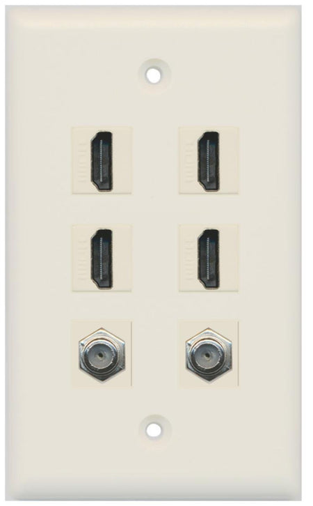 RiteAV - 4 HDMI and 2 - Coax Cable TV F Port Wall Plate - Light Almond