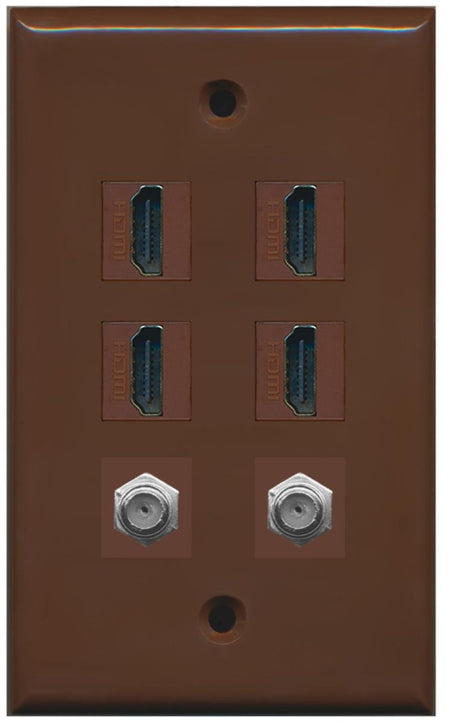 RiteAV - 4 HDMI and 2 - Coax Cable TV F Port Wall Plate - Brown