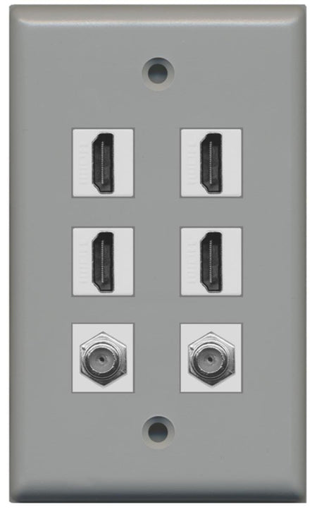 RiteAV - 4 HDMI and 2 - Coax Cable TV F Port Wall Plate - Gray