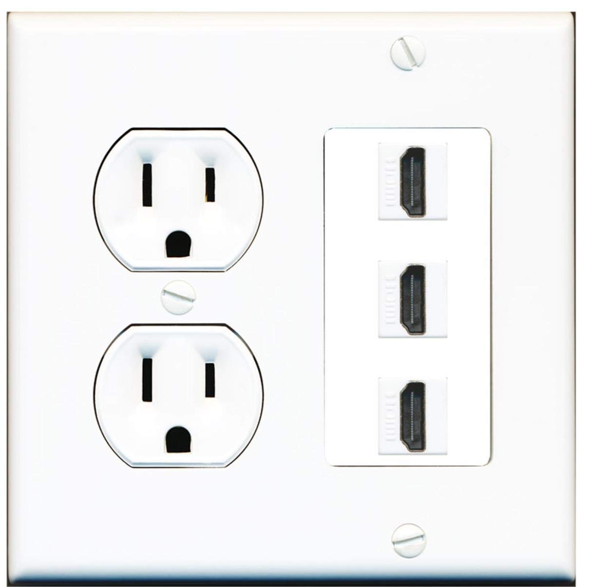 15 Amp Round Power Outlet 3 Port HDMI A/V Wall Plate