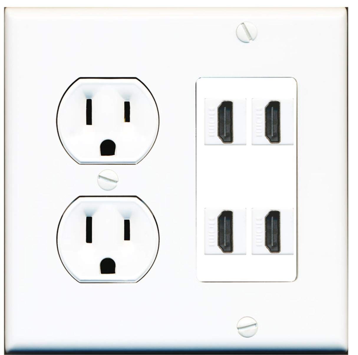 15 Amp Round Power Outlet 4 Port HDMI A/V Wall Plate