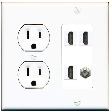 15 Amp Round Power Outlet 3 Port HDMI 1 Coax Cable TV F-Type Wall Plate
