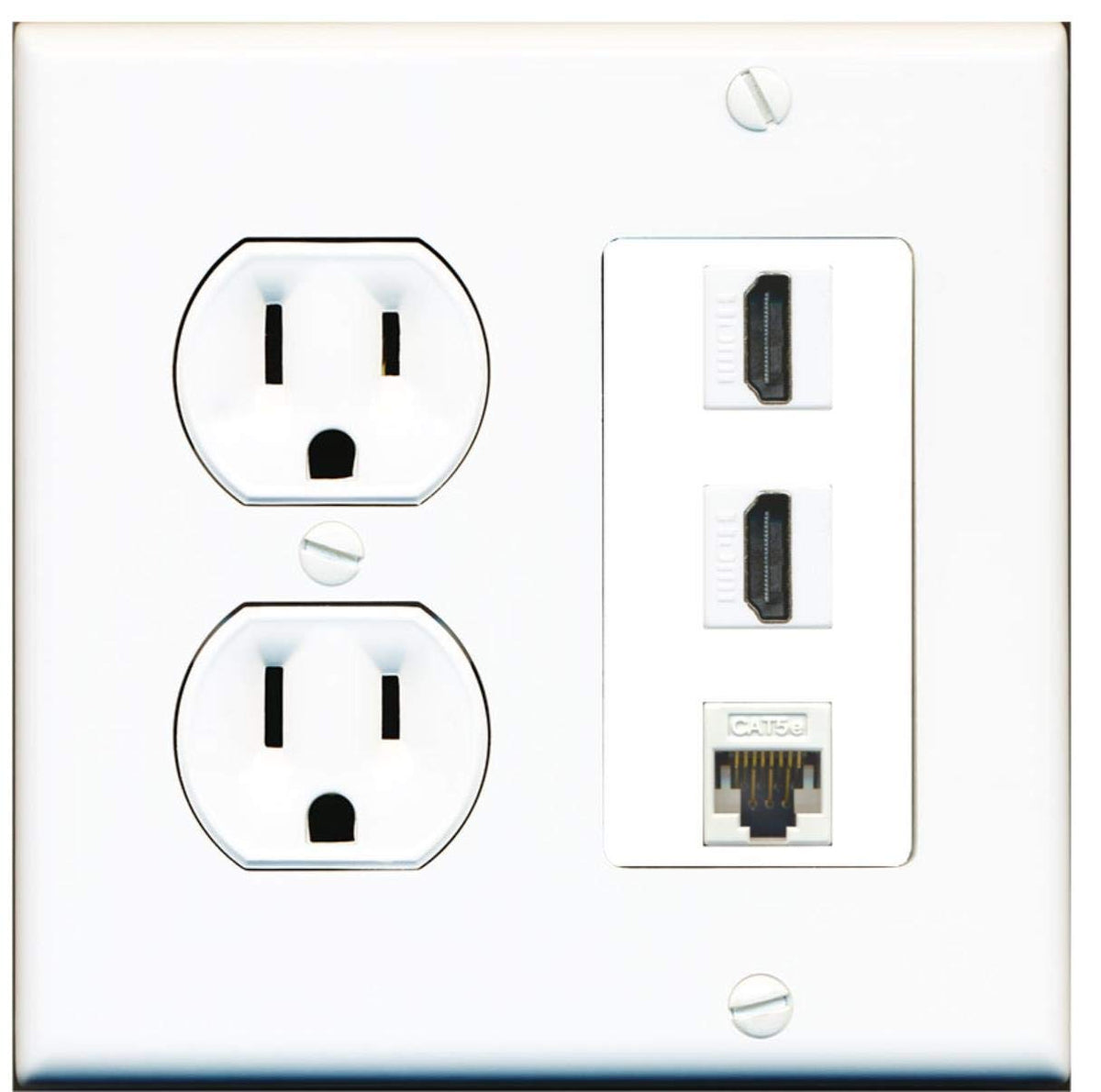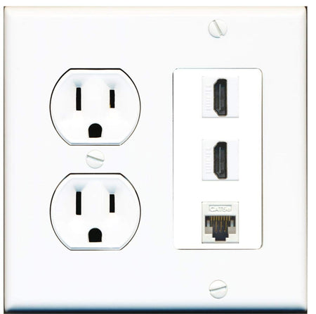15 Amp Round Power Outlet 2 Port HDMI 1 Cat5e Ethernet Wall Plate White