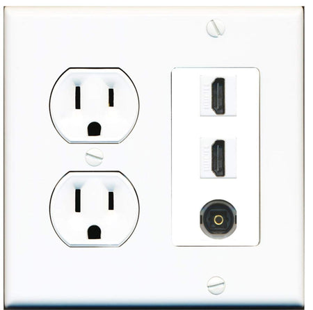 15 Amp Round Power Outlet 2 Port HDMI 1 Toslink-Optical-SPDIF Wall Plate