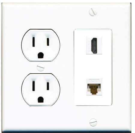 15 Amp Round Power Outlet 1 Port HDMI 1 Cat6 Ethernet Wall Plate White