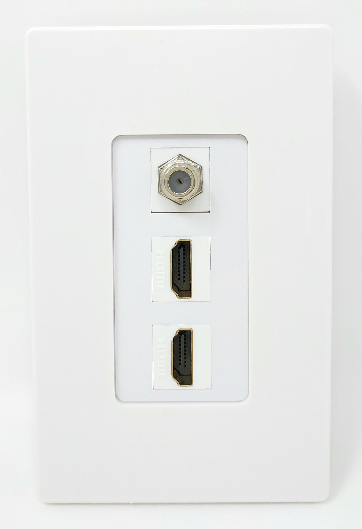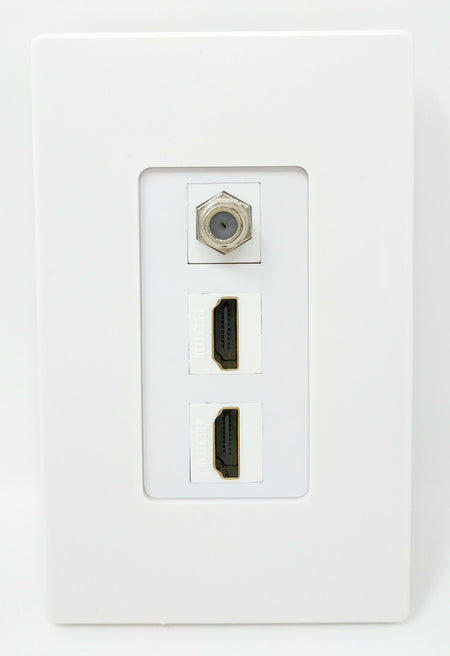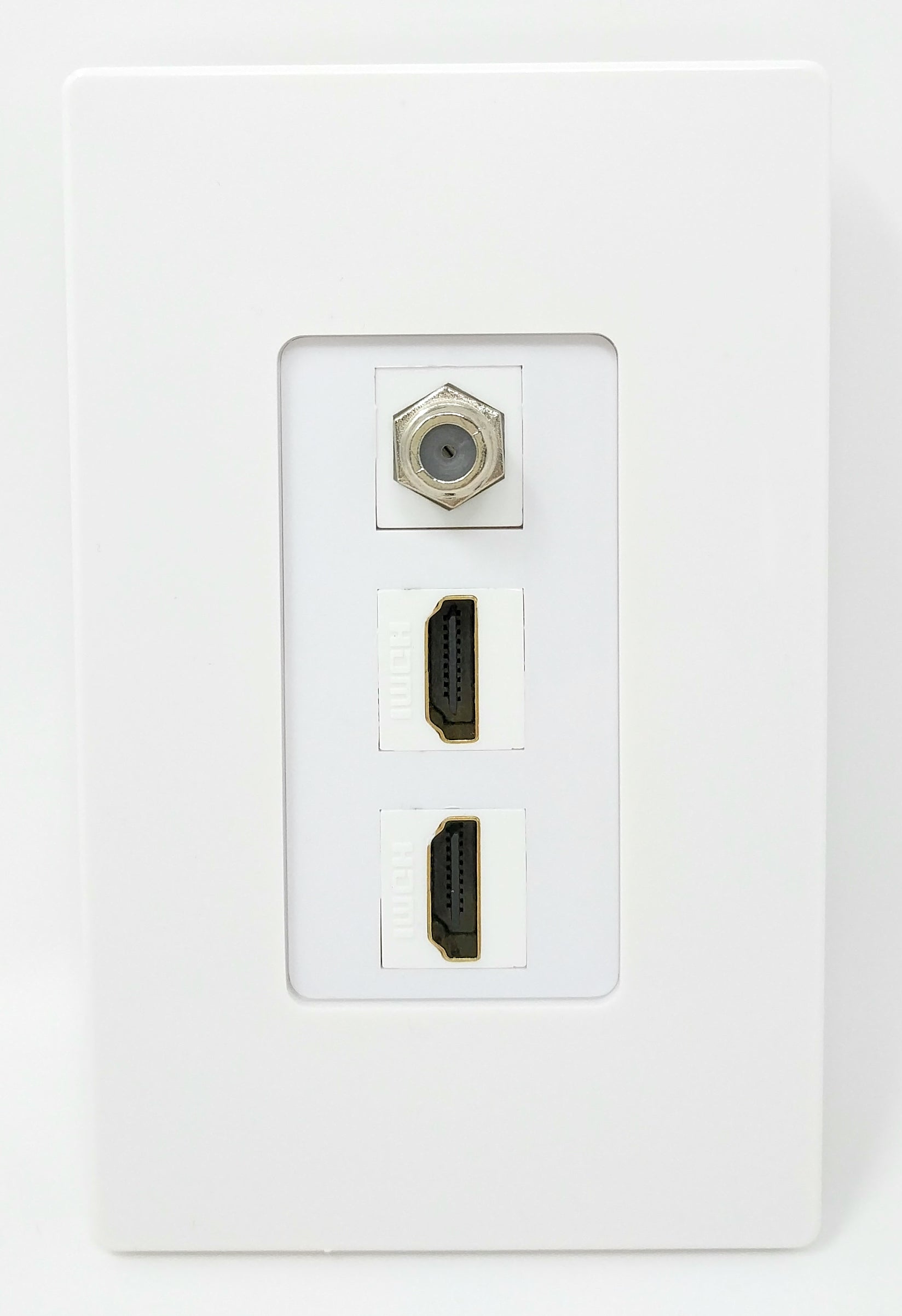RiteAV - 2 Port HDMI 1 Coax Cable TV- F-Type Decorative Screwless Wall Plate