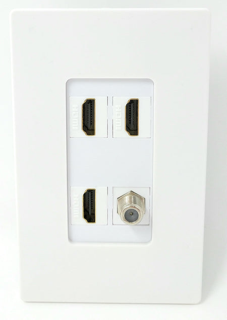 RiteAV - 3 x HDMI and 1 x Coax Cable TV F Type Port Wall Plate Screwless Decorative - White