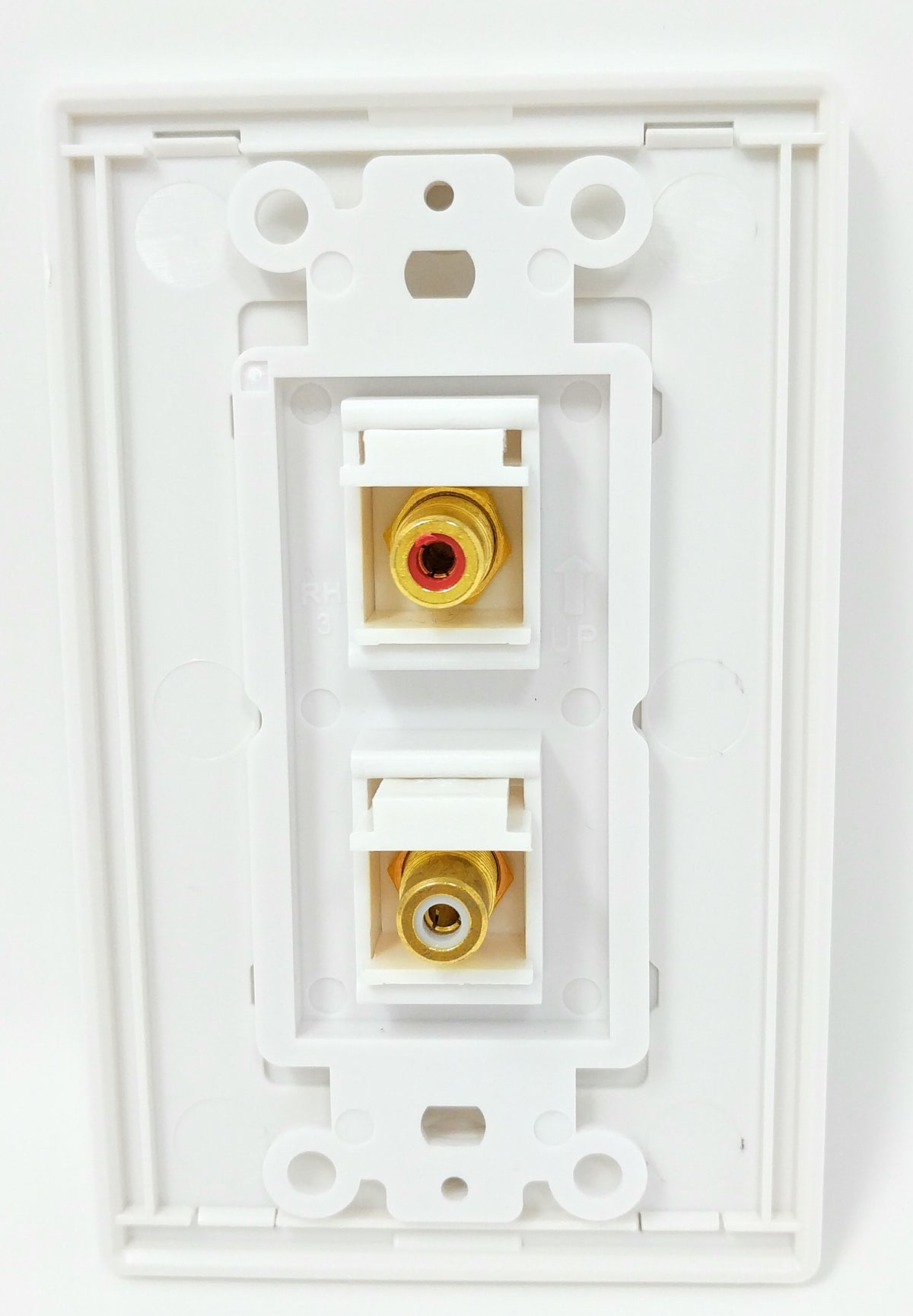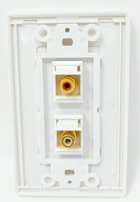RiteAV - 1 Port RCA Red 1 Port RCA White Wall Plate Screwless Decorative White - Bracket Included